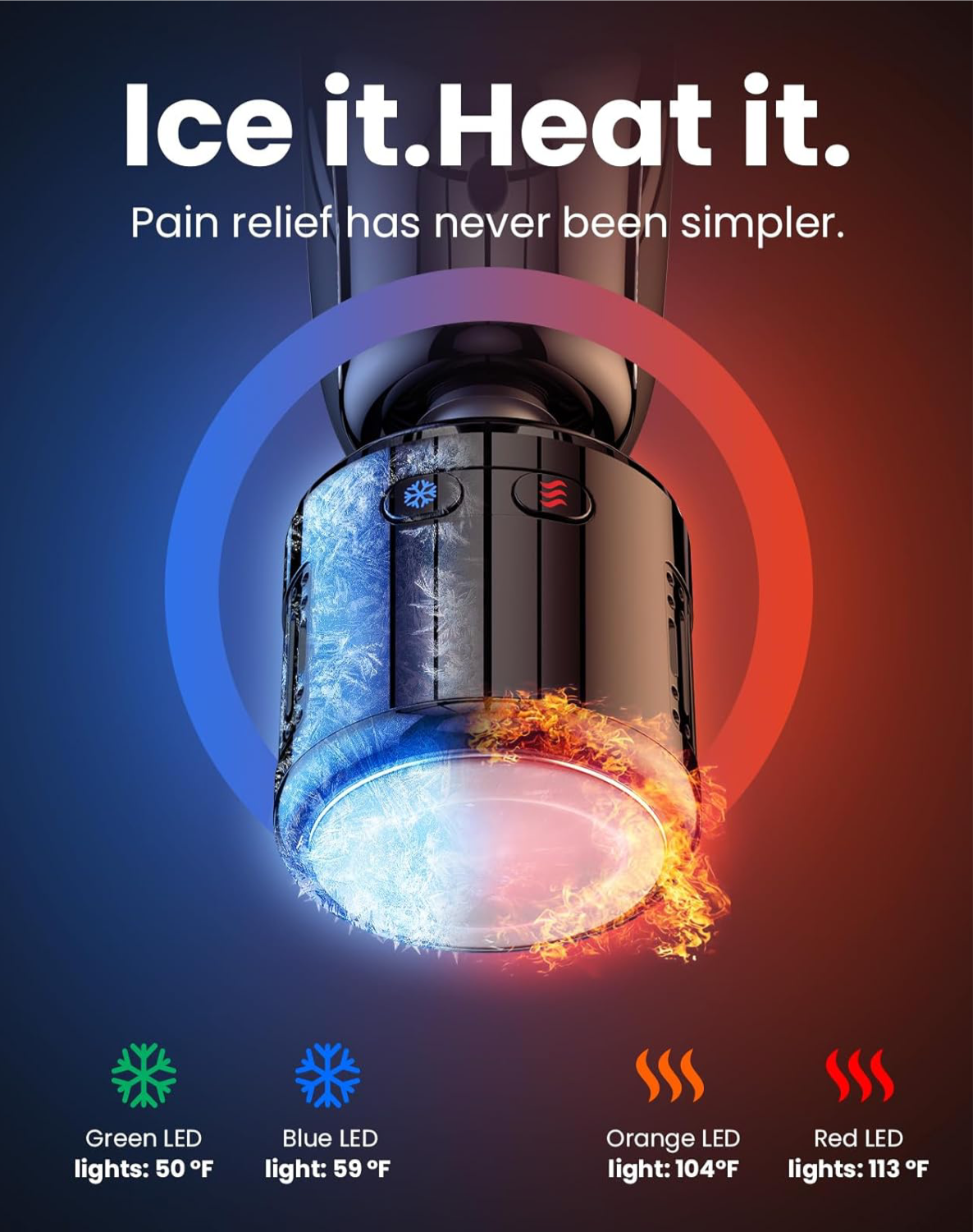 Answer 2: The device allows you to switch between heat and cold therapies. Use the cold setting to reduce inflammation and soothe sore muscles after workouts, while the heat feature enhances blood flow and flexibility to prepare your muscles for activity.