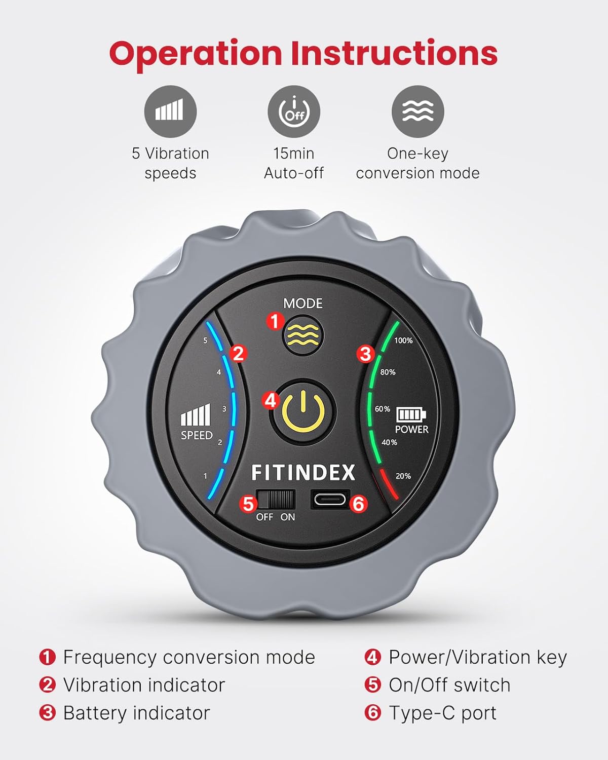 Revitalize your body with our innovative foam roller, designed for muscle recovery and pain relief. Its 5-speed vibration settings provide a tailored massage that targets deep tissue discomfort, enhancing your wellness journey.